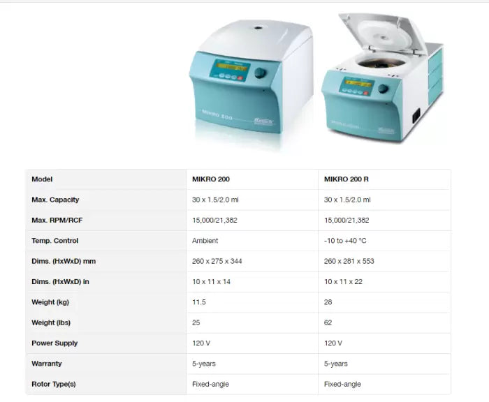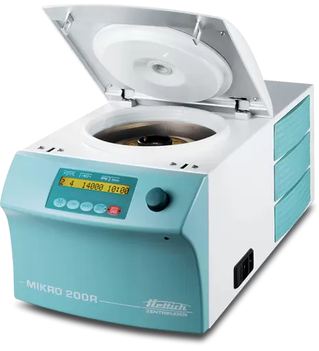 Fast cooling for greater efficiency. Available with optional temperature control (-10 to +40 °C), the compaal separation results. Fast cooling for greater efficiency. Available with optional temperature control (-10 to +40 °C), the compact MIKRO 200 R cools down to +4°C in just 10 to 15 minutes using the Fast-Cool function.