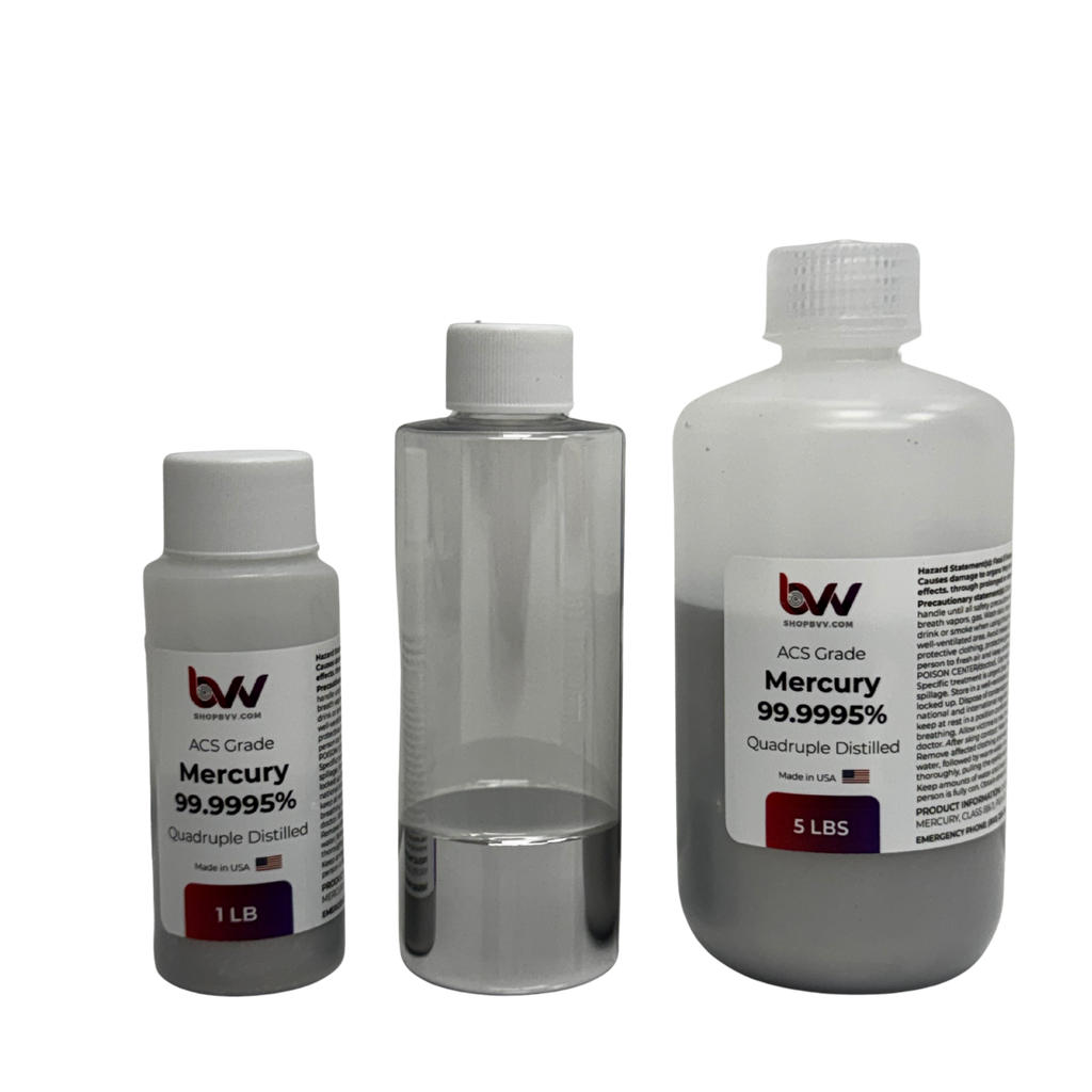 Our mercury is virgin quadruple distilled. Its purity is 99.99995%. This product ships as Hazardous material in any quantity, even small vial is required to ship as a regulated hazardous material and carries all the additional handling fees associated.