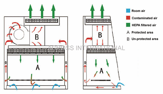 The primary purpose of a BSC is to serve as a means to protect the laboratory worker and the surrounding environment from pathogens. All exhaust air is HEPA-filtered as it exits the biosafety cabinet, removing harmful bacteria and viruses. This is in contrast to a laminar flow clean bench, which blows unfiltered exhaust air towards the user and is not safe for work with pathogenic agents. Neither are most BSCs safe for use as fume hoods. Likewise, a fume hood fails to provide the environmental protection that HEPA filtration in a BSC would provide. However, most classes of BSCs have a secondary purpose to maintain the sterility of materials inside (the "product").
