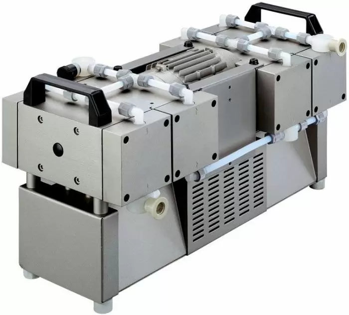 The Welch 2163 is a high capacity full chemical-resistant, 8-head, oil-free dry diaphragm vacuum pump with all-aluminum contact surfaces and deep vacuum capability. Oil-Free, portable, full chemical-resistant, means less maintenance and no more frequent and costly oil change, or cross-contamination.